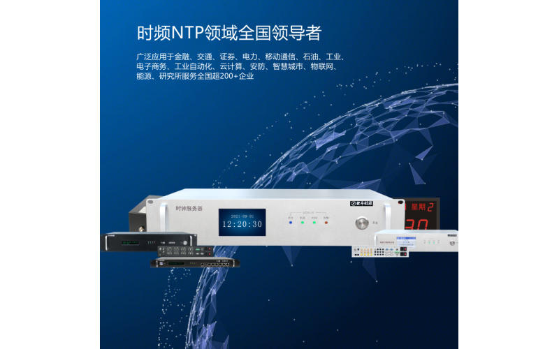 公司的產品屬于時間頻率相關的設備,主要生產NTP時間服務器、PTPV2/IEEE1588高精度時鐘、綜合時統、銣原子鐘、銣原子頻率標準、北斗時鐘卡、PCIE板卡、頻率基準源、計量測試儀、數碼子鐘等產品,這些產品已應用到已廣泛應用于金融、交通、證券、電力、移動通信、石油、工業、電子商務、工業自動化、云計算、安防、智慧城市、物聯網、能源、研究所等各領域。